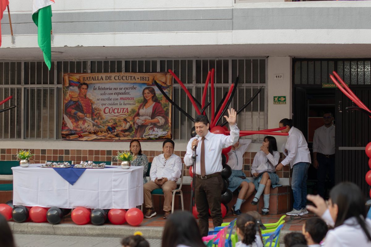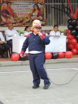 Nuestros estudiantes demostraron sus dotes histriónicos al representar una obra de teatro con monólogos de los personajes más importantes en la batalla de Cúcuta. Cabe resaltar, que todos los monólogos fueron recitados de memoria.