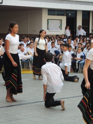 También disfrutamos de la participación de nuestros estudiantes en otros puntos artísticos como los bailes folclóricos y el canto. En el baile, el grado tercero nos deleitó con su versión del clásico: “Brisas del Pamplonita”.