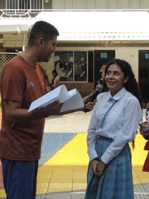 Queremos destacar la labor de dos estudiantes del grado décimo (Danna García y Laura Rolón), las cuales tomaron evidencias fotográficas y en video de todo el evento, como parte de su servicio social (Ebenezer Filmmakers). Agradecemos su valiosa colaboración.